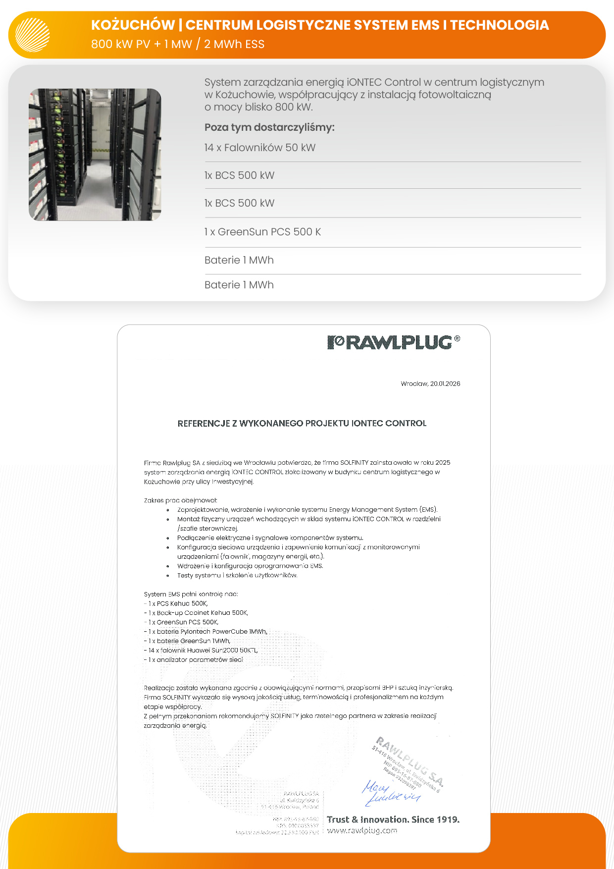 Wsparcie na etapie dobrania instalacji do profilu zużycia energii, wyboru komponentów, projektu, montażu, podłączenia instalacji oraz ewentualnego serwisu. Przygotowujemy instalację dowolnej wielkości wraz z projektem i prognozowanymi oszczędnościami, dostarczamy komponenty od renomowanych producentów oraz oferujemy wsparcie techniczne w czasie trwania i po zakończeniu realizacji projektu.